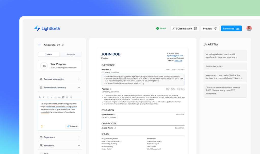 Lightforth AI Resume Builder